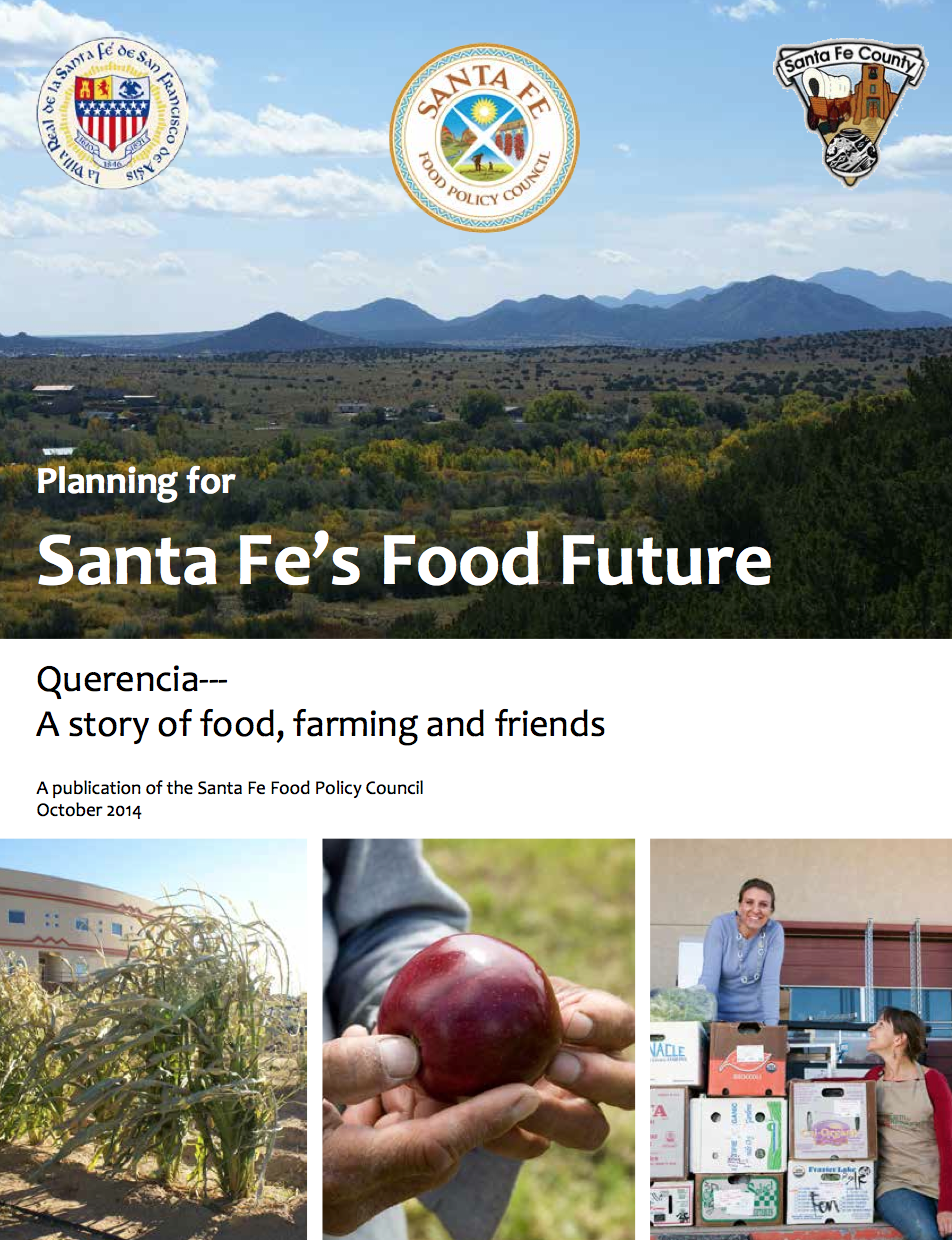 In October 2014, the Santa Fe Food Policy Council, an advisory body to Santa Fe County, released the first food systems plan for the region. The document – Planning for Santa Fe’s Food Future: Querencia, a Story of Food, Farming, and Friends – highlights several goal areas and policy action items, focusing on how the community accesses, produces and shares knowledge about food.